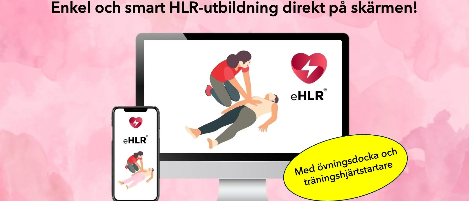E-utbildningen i HLR (hjärt- och lungräddning) innehåller teoriavsnitt i form av inspelade filmer samt kontrollfrågor och slutprov. Praktisk övning sker på en docka.